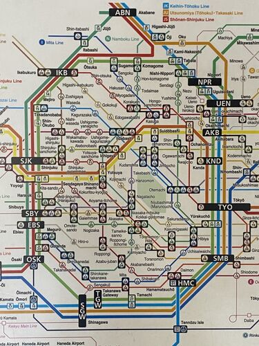 駅の券売機そばで、ふと目に留まりました。 大きな駅がUENなど飛行場みたいな表記はまだいいとして、特に山手線内側のこの路線の過密度合い。 改めて驚きました! 路線の多さもですが、3つ4つ乗り換えある駅。 海外からの旅行者はパズル説く気分でしょうか…