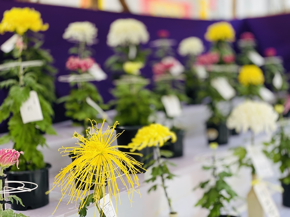そしてところどこに設置されたよしずの小屋には、愛好家が育て上げた菊たち。
