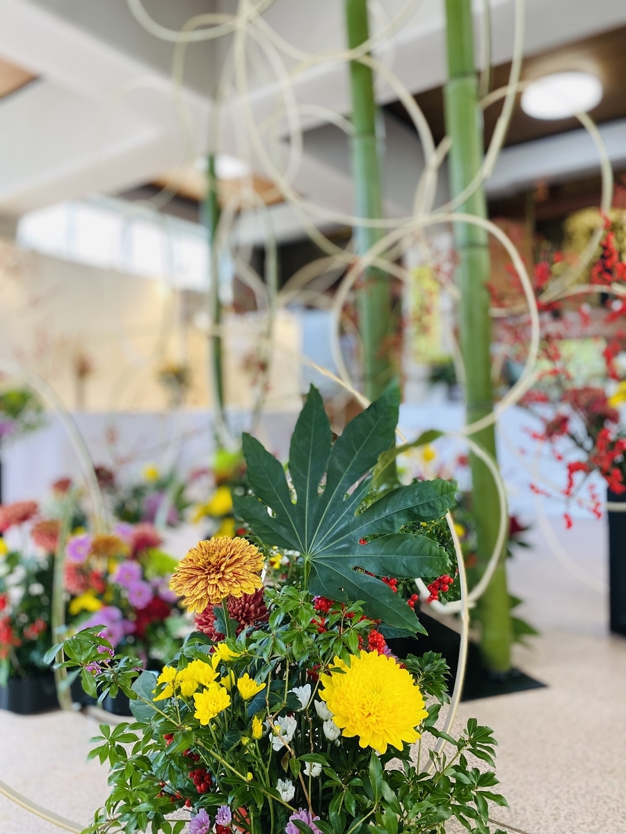草月流生け花とのことですが、竹や他の植物と組みあわせたアートです。