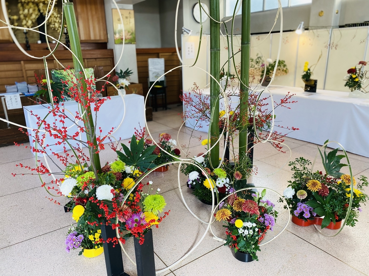 お堂の中では生け花の展示。